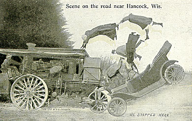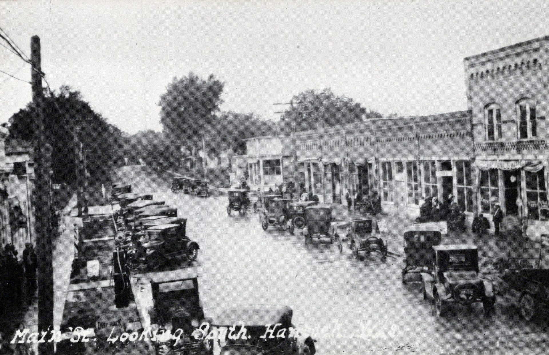 During the early years mail for Hancock, as well as the townships of Coloma, Deerfield and Richford, was received from the post office established on June 19, 1851 at Richford, then called “Adario.” As settlement along the Portage Road increased however, mail was delivered at the Chamberlain Hotel by a stagecoach that passed through on its way from Stevens Point to Portage.